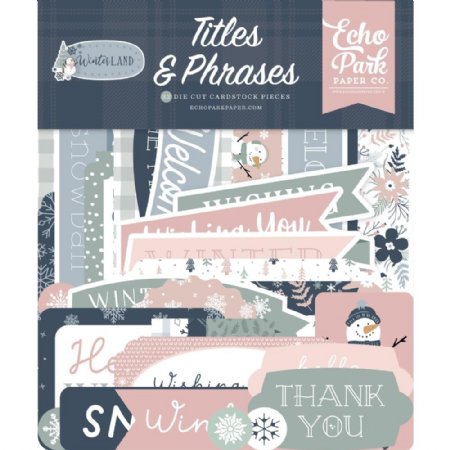 This package of 32 pieces of die cut cardstock ephemera, Titles and Phrases is part of the Winterland Collection from Echo Park. These pieces include framed words and phrases, banners, sentiment strips, snowflakes, and more. These pieces of ephemera can be added to cards, scrapbook pages, tags, journals, and other paper crafting projects. This package of ephemera is made in the USA.