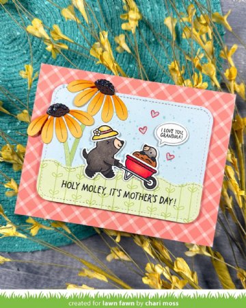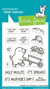 Wheel in sweet Mother's Day wishes with our newest mole friend! This set includes a selection of the sweetest images for the inside of your barrow. Perfect for Mother's Day, Spring, or anytime cards this set will be an amazing addition to your mole collection.