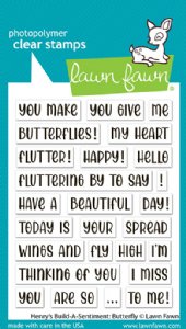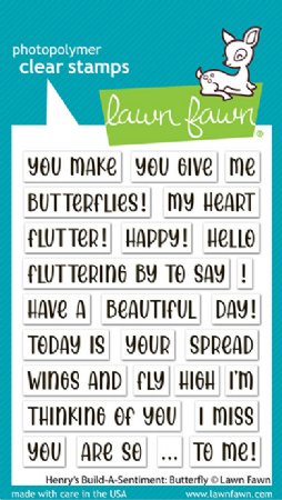 This amazingly versatile set will help you build the perfect sentiment for all your butterfly themed projects! These sentiments are created with a solid base making it easy to line up your fluttery phrases. Combine with any of the Henry's Build-A-Sentiment sets for endless creations!