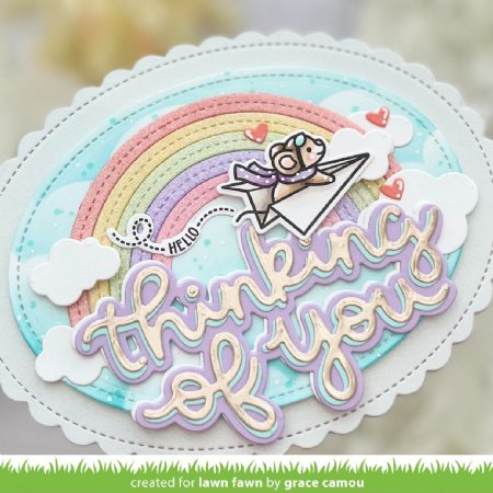 Coordinating set ideas: Small Stitched Oval Stackables layers sweetly for an extra layer of fun. Stencil a solid oval layer with a fun pattern like Basket Weave Stencils and adhere on top of your Stitched Scalloped Oval layer. This adds a lacy detail and amazing dimension to your cards!